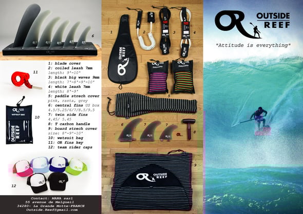 Outside Reef est une marque dont le coeur bat au rythme du Surf Debout à la Rame depuis le début. Si nous vous proposons aujourd'hui des accessoires dédiés au SUP , c'est qu'ils ont été testé et développé pour vous satisfaire. Super Leash, Paddle Bag , Blade Cover , ailerons, etc ...